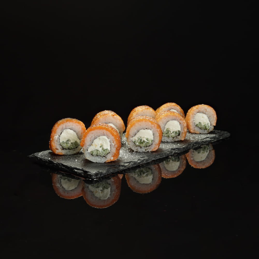 Рис, водоросли нори, сыр творожный, огурец, лосось, сахар тростниковый, соль морская
