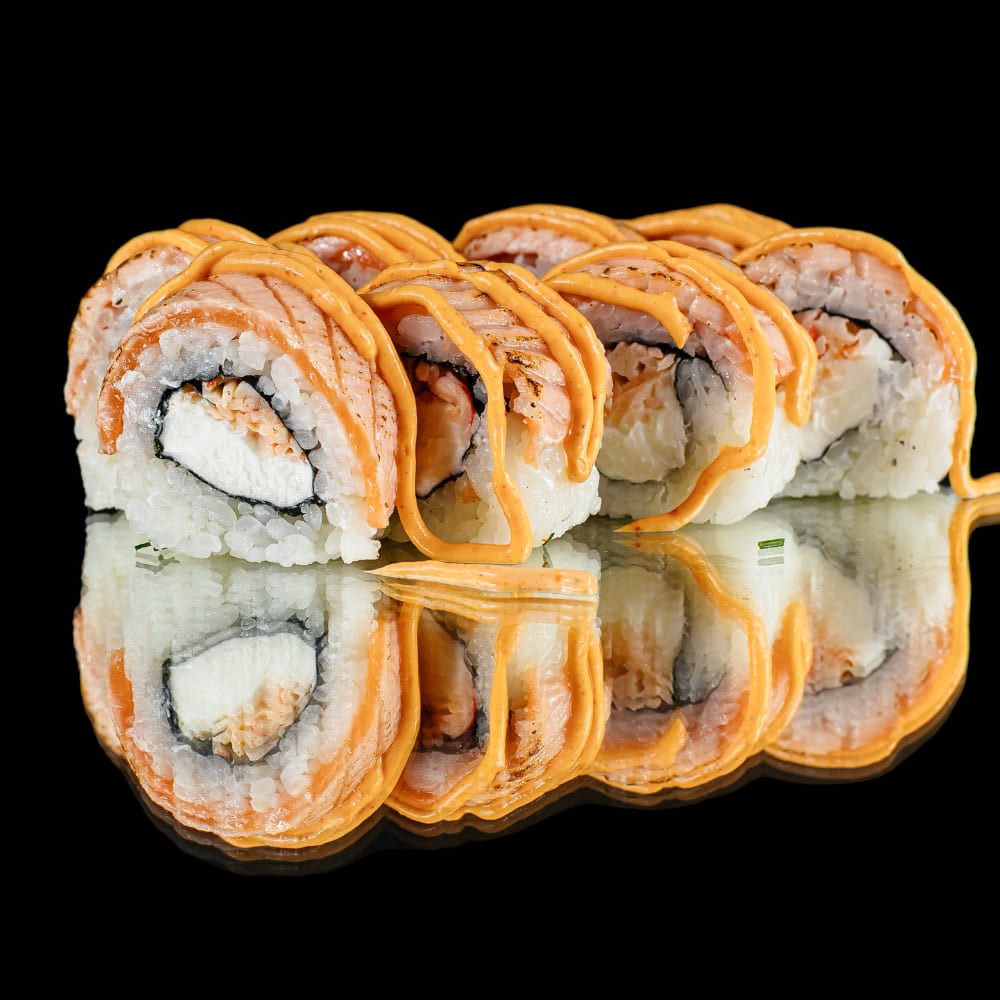 Рис, нори, сыр творожный, краб, лосось, спайси соус
