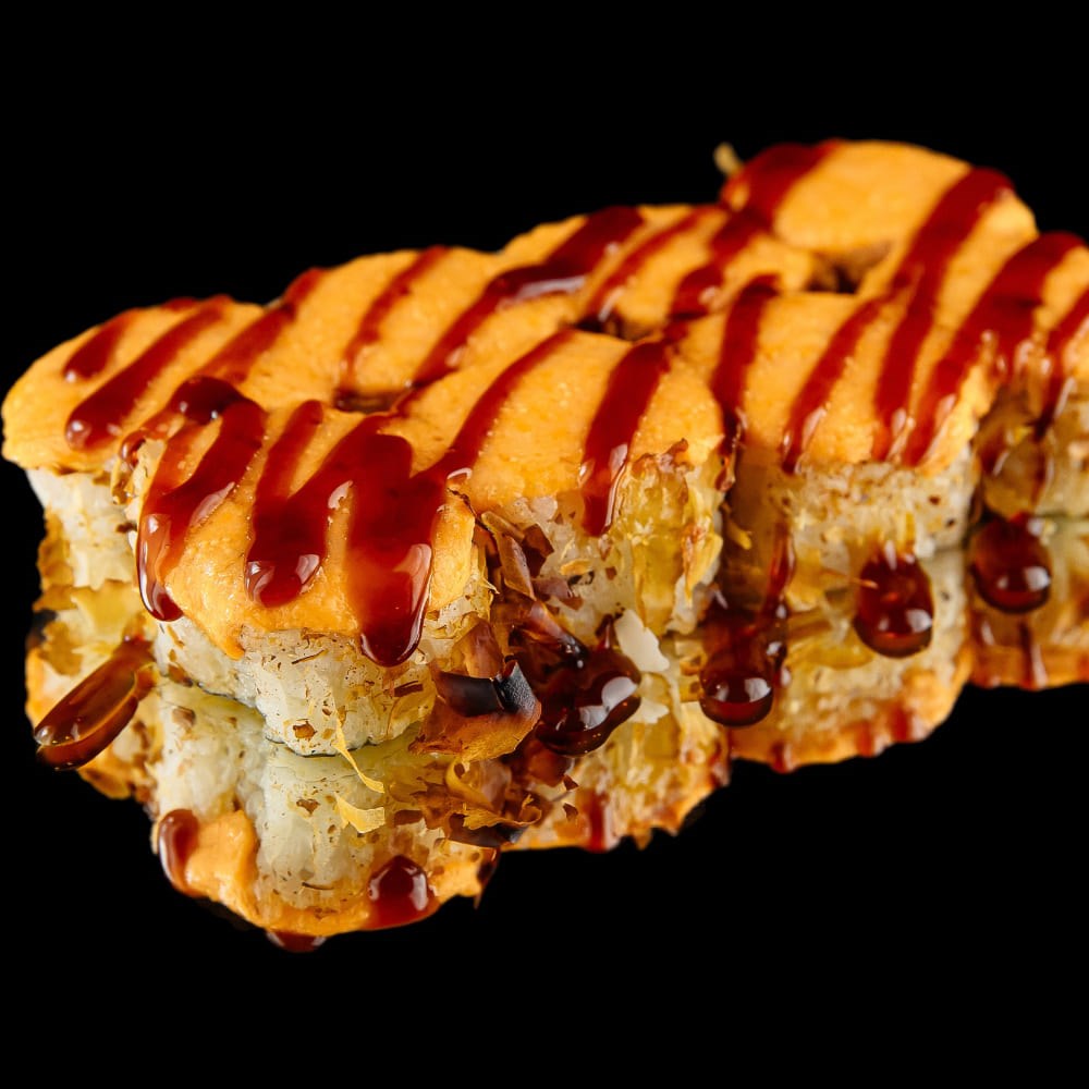 Рис, нори, грудка копченая, сыр Чеддер, огурец, стружка тунца, унаги
