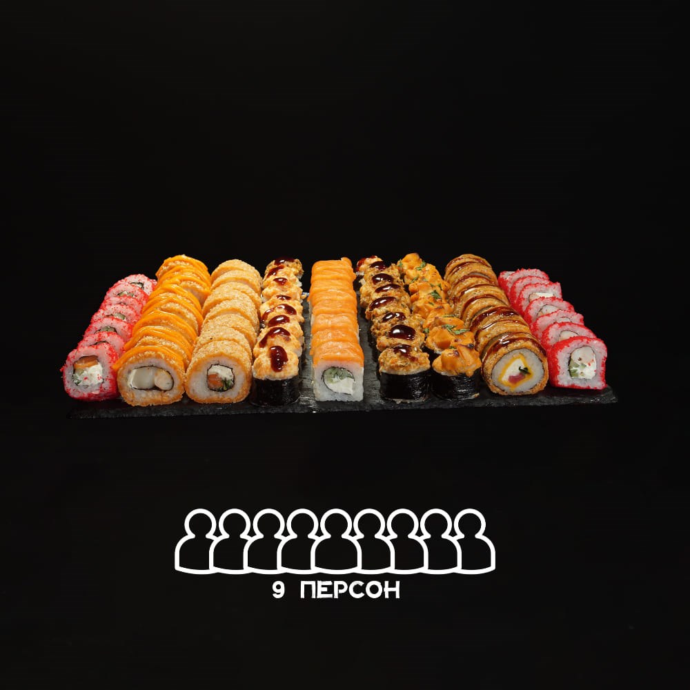 Состав: филадельфия лайт, калифорния снежный краб, калифорния с лососем, ролл дуэт, сырный тунец, филадельфия темпура, мидийный, сливочный лосось, лосось хот