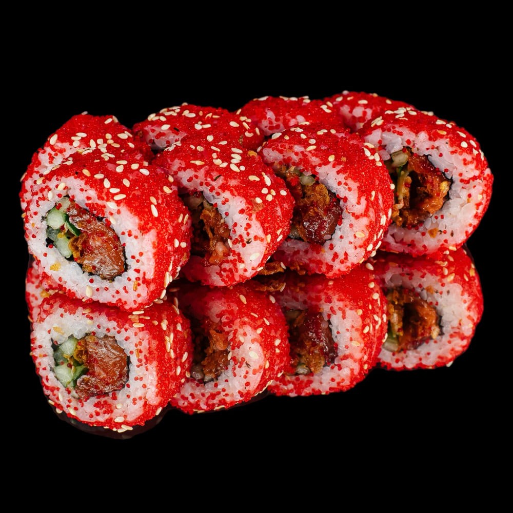 Рис, нори, лосось, лук жарен., огурец, масаго, кунжут