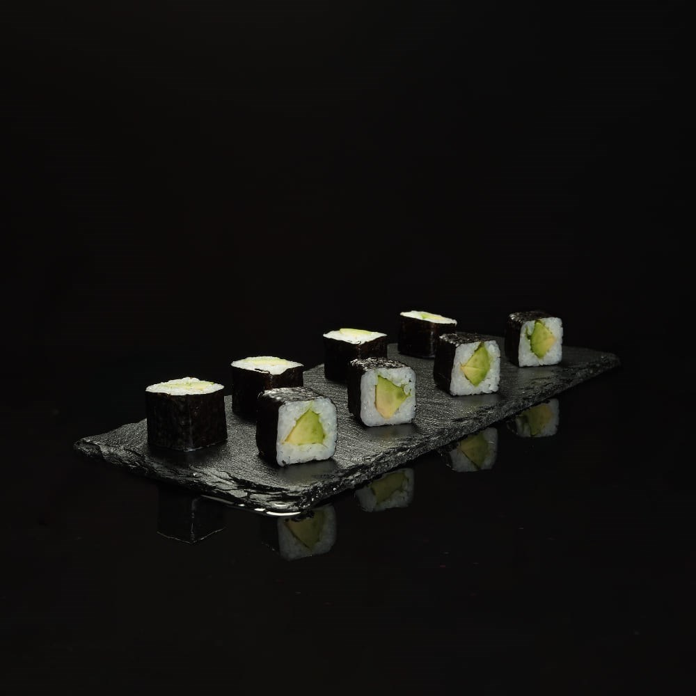 Рис, водоросли нори, сыр творожный, авокадо, лосось
