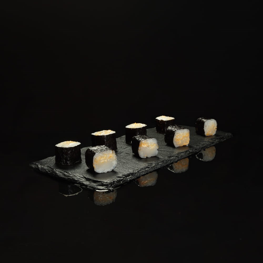 Рис, водоросли нори, морской гребешок, соус спайси