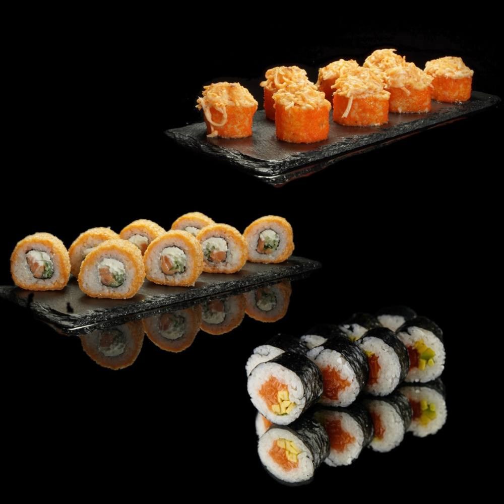 Состав: калифорния хот, филадельфия темпура, сяке авокадо