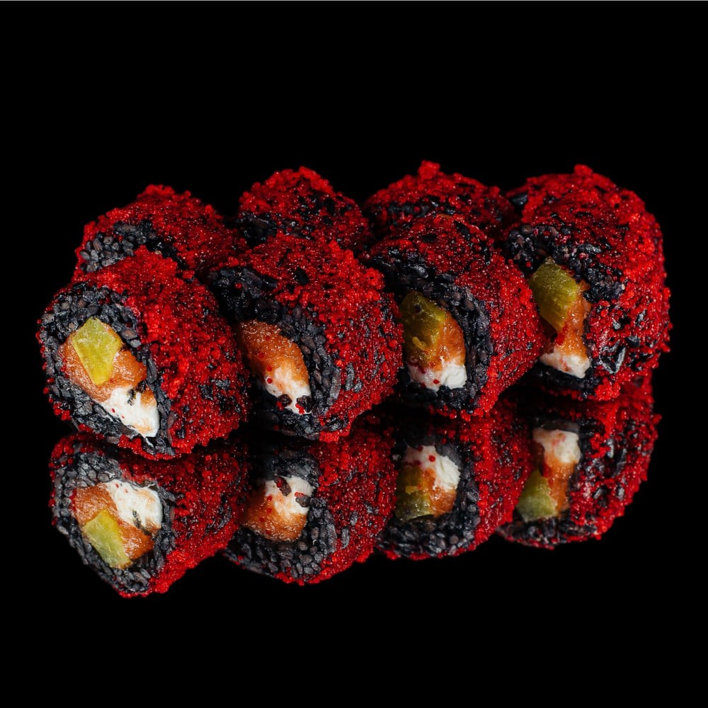 Нори, рис черный, такуан, сыр творожный, лосось тар-тар, масаго
