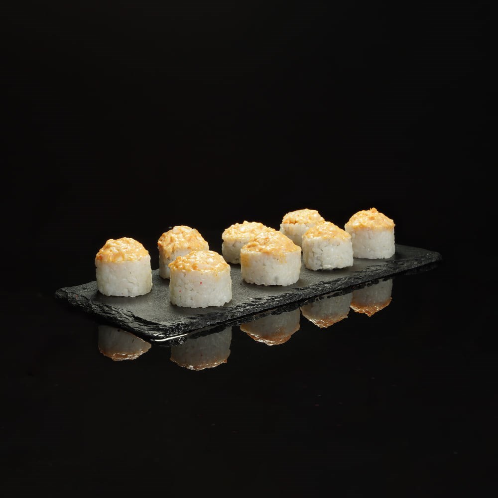 Рис, водоросли нори, сыр творожный, огурец, креветка отварная, соус спайси