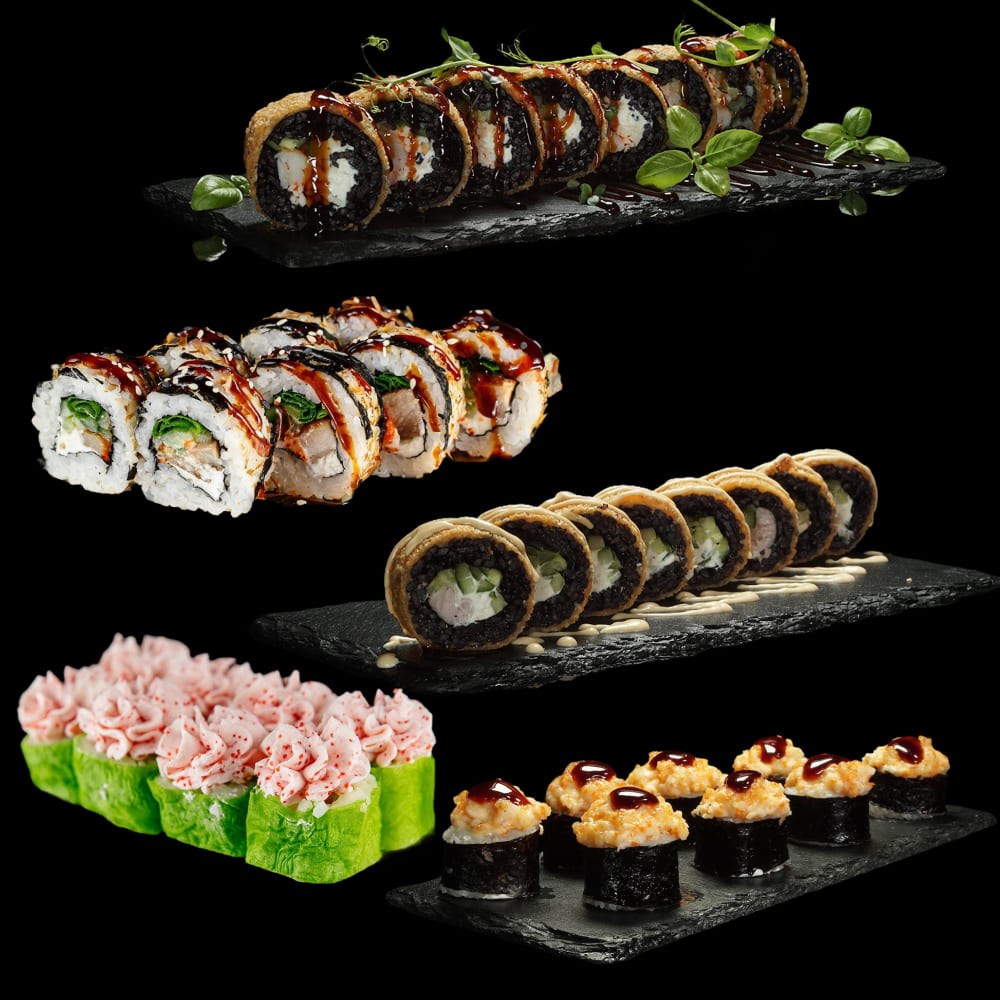 Состав: дракон бонито, сегун, магуро BLACK, тори BLACK, креветка хот